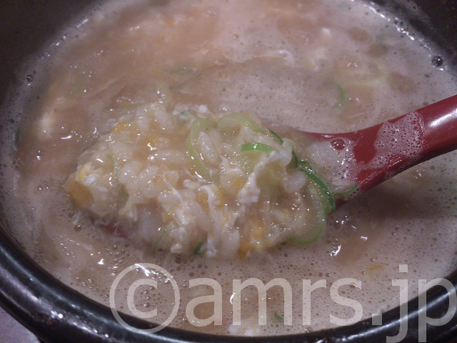 次に〆の雑炊を頼んでみるとスープが厨房へ引き下げられて
