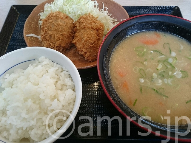 ヒレカツの皿と同じ大きなのとん汁のお椀