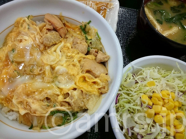 親子丼サラダセット@なか卯 X Bluesky Facebook はてブ LINE2015.07.17食卵・玉子FASTFOOD・ファストフード丼(どんもの)肉(チャーシューなど)6点サラダ満腹度10芸人で芥川賞、ピース又吉おめでとうございます。 なか卯へ時間もないからサクッとね って、15日-17日は、なか卯の日ってメールが来てたわ って事でなか卯に行きまして 食券機でクイックナンバー打ち込みますと、親子丼(並)が100円引きであら嬉し。 ついでにサラダセットも購入待つ事3分 評価は、6点相変わらずのつづだく加減。 玉子のトロトロ加減もイイ感じで素敵で美味い。また食べよう食べた物:親子丼(並) 390円(キャンペーン価格)、サラダセット +150円