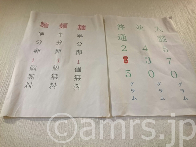 麺普通が285gって、茹で上げ前の量なのか?が不明ですが・・・半分なんで142.5g