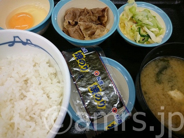 定番朝定食@松屋 X Bluesky Facebook はてブ LINE2015.10.20食定食卵・玉子FASTFOOD・ファストフード松屋系肉(チャーシューなど)6点満腹度8ここが正念場ですな松屋へ朝から松屋ですから、定番朝定食の食券を購入し入店→着席。小鉢は牛皿を指定待つ事1分 評価は、6点牛皿小鉢は、プレミアム牛めし 当たりハズレあるんだろうけど、普通です。朝からTKG これで牛肉と食べるのは、美味しでした。にしても、松屋のモバイルクーポン使うと 豚汁が30円引きらしい・・・ でも、Android5.0以上に対応してないという悲しさ・・・涙食べた物:定番朝定食 360円