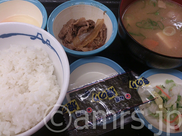定番朝定食、豚汁変更@松屋 X Bluesky Facebook はてブ LINE2016.01.01食定食卵・玉子FASTFOOD・ファストフード松屋系肉(チャーシューなど)TKG(たまごかけご飯)満腹度10明けましておめでとうございます。本年もよろしくお願いいたします。と、書きつつもネタは12月31日 朝から松屋です。 寒さと温かい豚汁を求めての訪問定番朝定食、豚汁変更の食券を購入し入店→着席。 小鉢は、牛皿でお願い待つ事3分 評価は、7点やっぱり松屋の豚汁は美味い。 さくっと飲める点でも好評価。って、いつものことなのですが・・・TKGも食べられたし2016年を迎えましょうって感じで退店でした。食べた物:定番朝定食 360円、豚汁変更 +180円