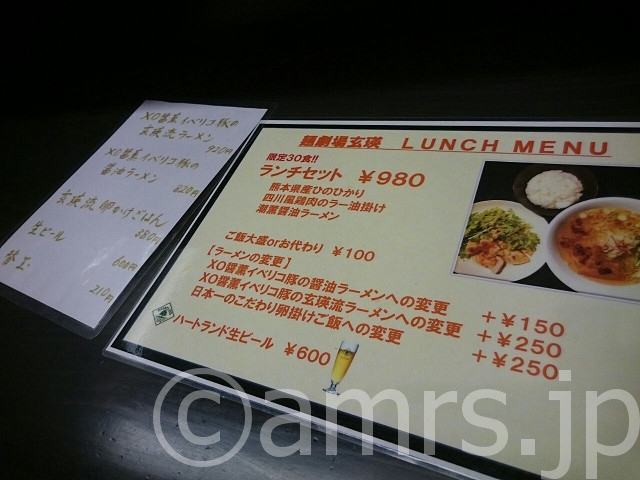 食べた物:ランチセット 980円、XO醤薫イベリコ豚の玄瑛流ラーメン +250円