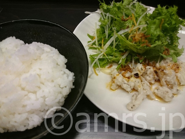 ランチセット(熊本県産ひのひかり、四川風鶏肉ラー油掛け、潮薫醤油ラーメン)の
