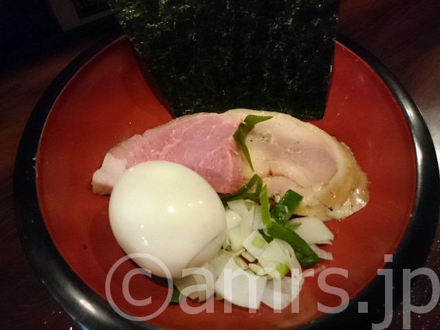 別皿で、味玉、ネギ、チャーシュー、海苔