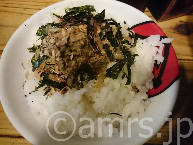 今回食べてみましたが、鰹節に辛味噌(?)まぶして刻み海苔を入れたものが乗るご飯もの