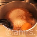 まずは、ご飯、生卵をスープの残りにドサッと入れます