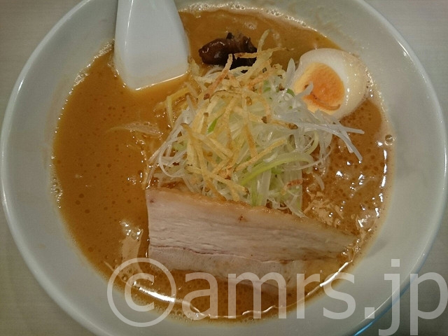 具は、ネギ、フライドオニオン(?)、味玉(半分)、きくらげ、チャーシュー