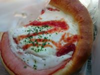食べた物:あげぱん 110円、カレードーナツ 170円、ピザパン 184円、ハムエッグ 227円、牧場のジャージークリームパン 177円