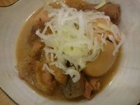 食べた物:ギネス 410円、煮込み(玉子入り) 150円、ハイッピーセット 370円、ポテサラ 130円、サバの塩焼き 150円、ちくわ磯辺揚げ 130円、虎ハイ 290円、極厚ハムカツ 310円