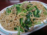味は醤油ベースであっさりめパスタ。