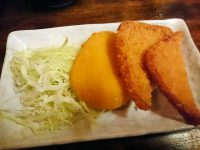 食べた物:コロッケ 100円、ハムカツ 150円、ポテトサラダ 250円、ホッピー セット 400円、お替わり焼酎 200円