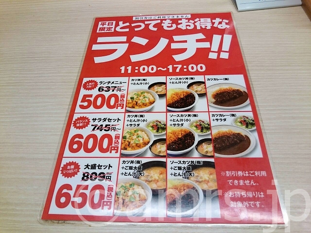 前回同様ですが、カツ丼(梅)、とん汁(小)、サラダランチセットを注文