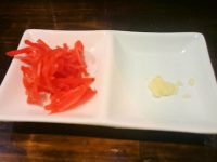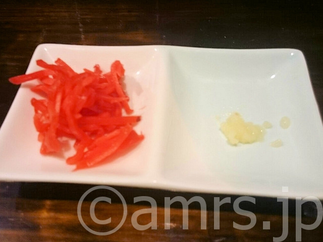 紅しょうがとおろしにんにくは、卓上には無く別場所にあり