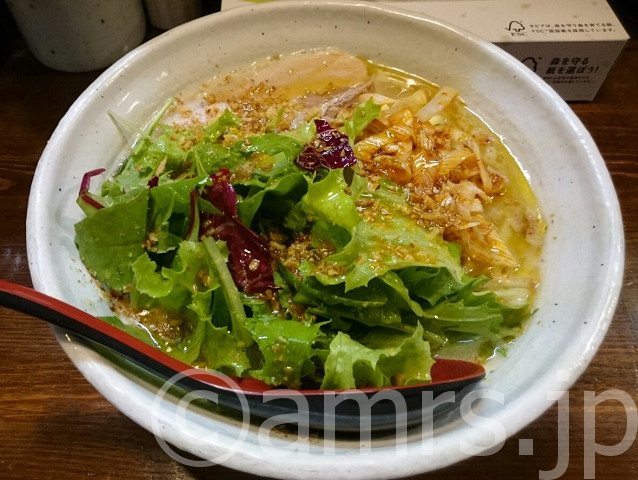 具は、チャーシュー、ベビーリーフ、揚げエシャロット、水菜、辛ネギ