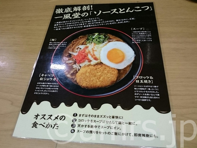 一風堂 浜松町スタンドを含む数店舗では、ソースとんこつにコロッケか、とんかつが追加可能