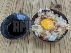 ライス無料ですから100円で、かつお節と生卵を頂ける感じですね