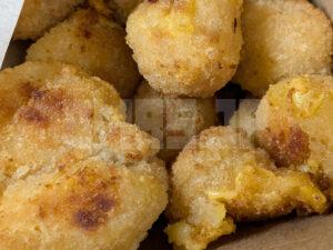 マカロニとチェダーチーズが混ぜたものを揚げたもの