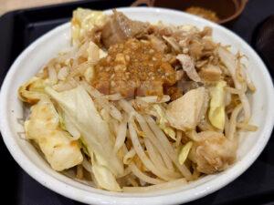 ニンニク野菜牛めし、追いニンニク背脂、味噌汁