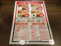 10月1日メニューとの事で、チャーハンとか、唐揚げとか省かれてますね