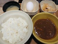 食べた物:お手軽朝食定食(ハーフ竜田) 280円、カレールー 0円(クーポン使用)