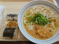 食べた物:得朝定 かけうど+俵おむすび 345円