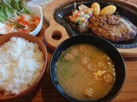 和風のタレがかかった美味いハンバーグは150gあり、そこそこの量