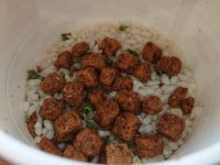 「カップを横に振ると、謎肉が無駄に浮かんでくるぜ!」