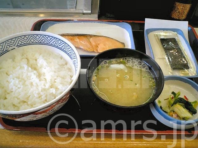 焼魚定食 by 吉野家 X Bluesky Facebook はてブ LINE2006.07.19食FASTFOOD・ファストフード魚・魚介系朝小腹が空く・・・吉野家発見 で、一度食ってみたかった朝定食の焼魚定食を食ってみることに 評価は、5点まあ、鮭メインですから縲鰀 塩加減は、嫌いじゃないですね でもパッとしないのが悲しいところ・・・ 食いたかった割には、感動少なし・・・ついでに豚皿も食いたくなってしまった って、豚鮭定食と変わらなくなっちゃうからね