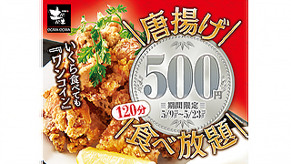 なんと、唐揚げ食べ放題には、+1,000円で飲み放題に出来るという特典付き