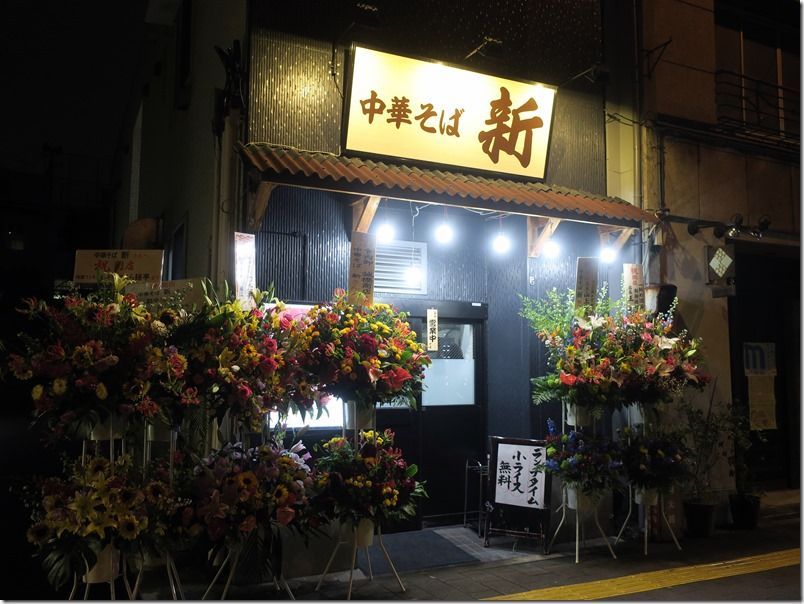 中華そば 新 東京都 台東区 らーめん 入り口 小ライス 無料 ランチタイム サービス 看板