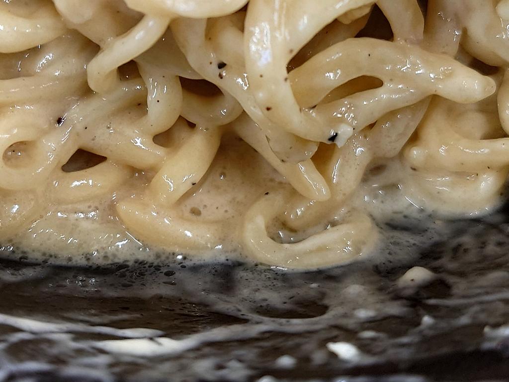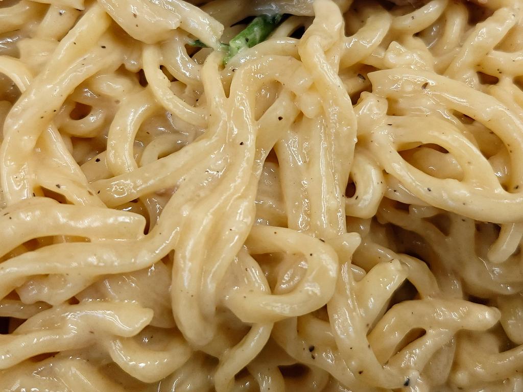 口当たり濃厚なカルボナーラからの口の中に残るニンニク風味