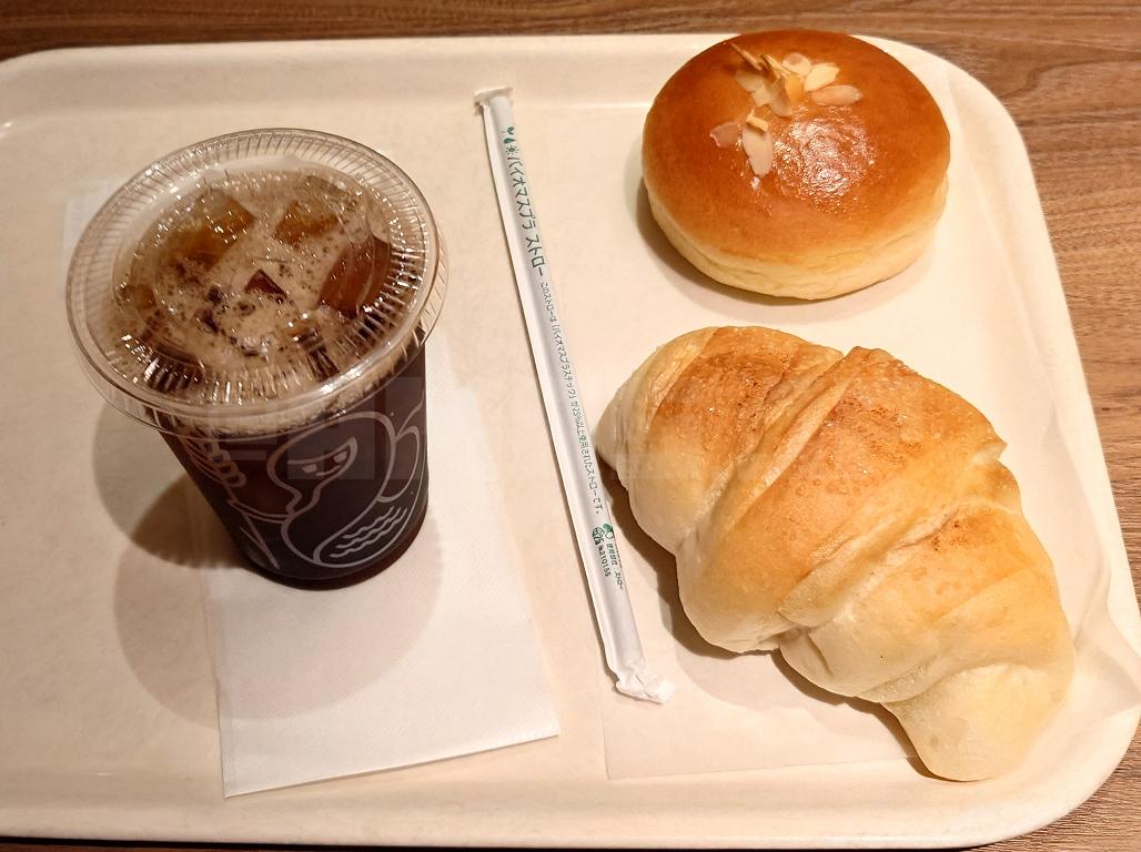 塩パン、北海道牛乳クリームパン、アイスコーヒー