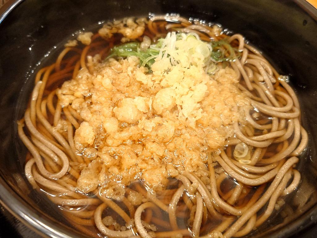 蕎麦は、天然揚げ玉とネギ入り
