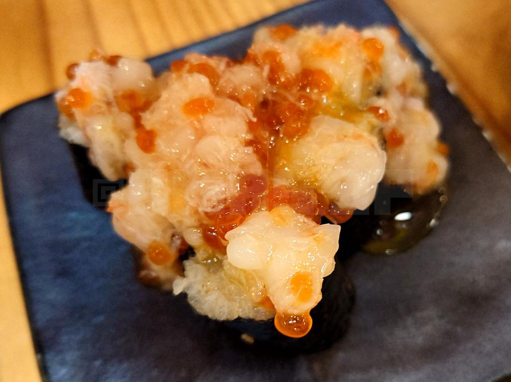 赤エビの身とズワイガニのほぐし身と黄身とイクラ