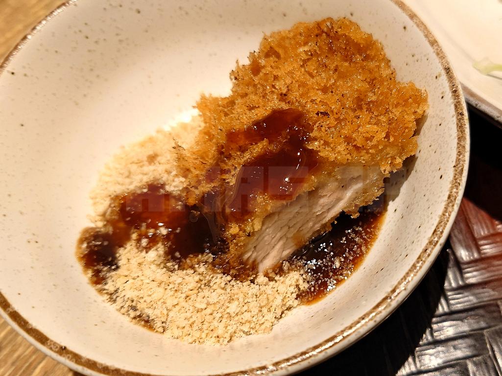 ヒレかつをディップして五穀ご飯と一緒に食べると