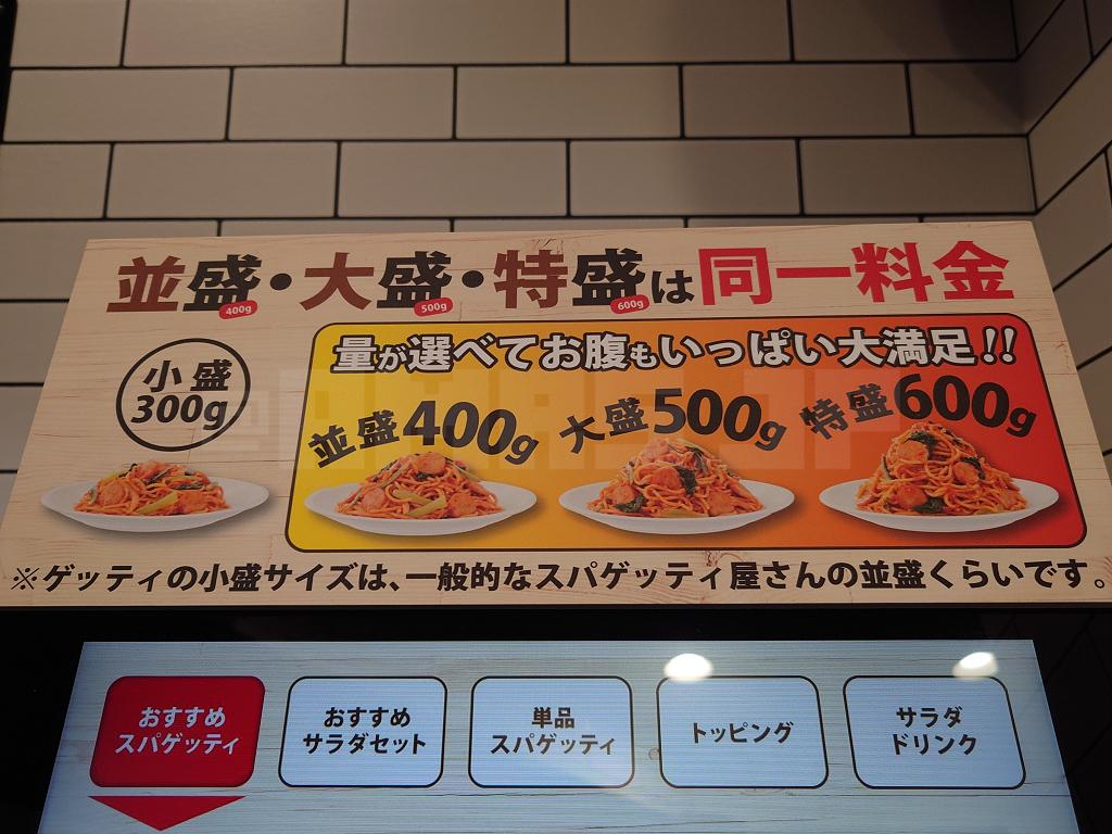 ジャポネの量、レギュラー(350g)、大盛(560g)