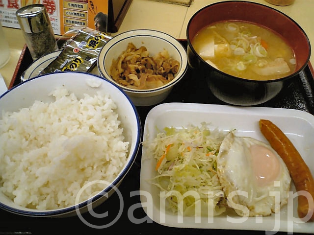 ソーセージエッグ定食、豚汁変更の食券を購入し入店