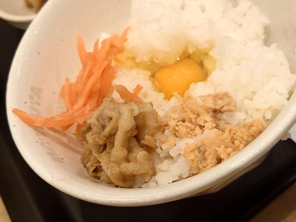 いつも通り、セルフ TKGミニ牛めしにしつつ