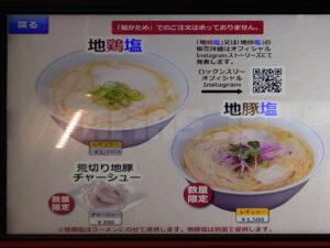 町田から赤坂へ移転、 69’N’ROLL ONE 赤坂本店へさて、店頭到着。昼過ぎ列びも無くサクッと入店醤油の2号?塩?悩みましたが、塩らぁめん、ランチタイム限定のそぼろ佃煮丼...