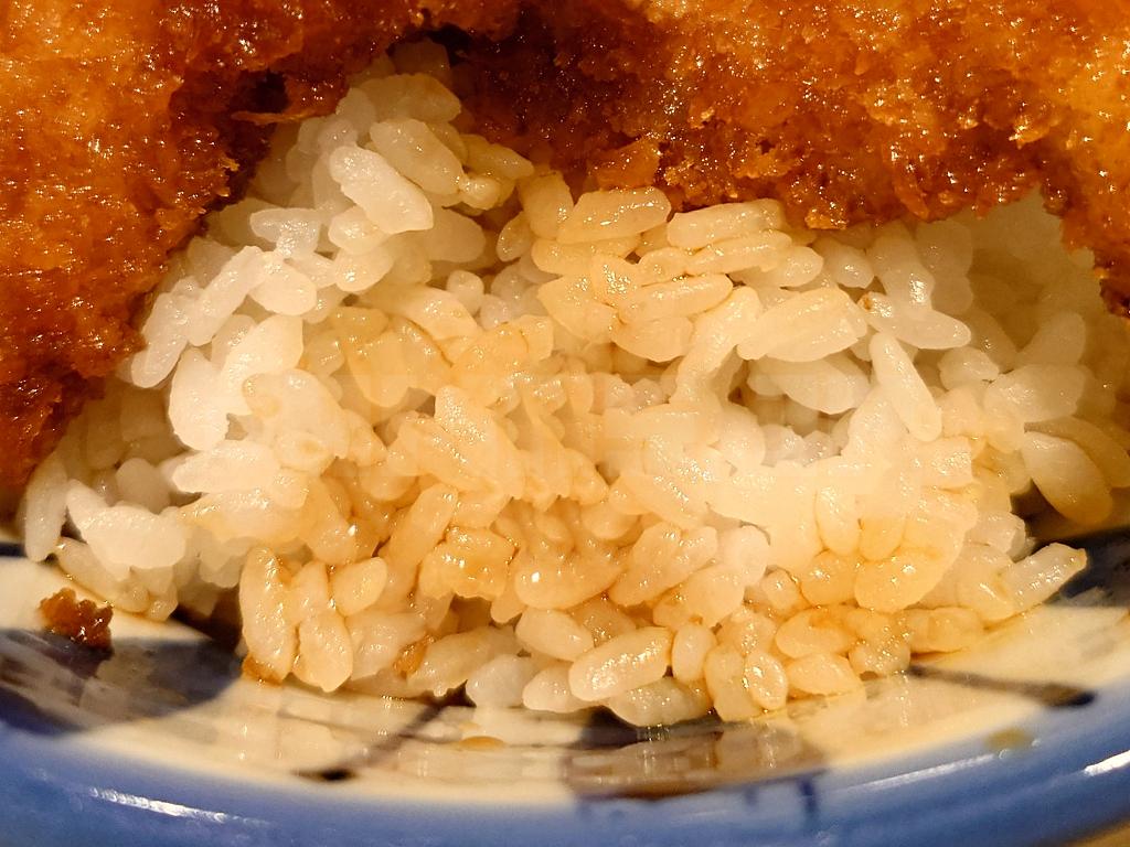 鶏たれかつをめくりまして、ご飯を確認しますと