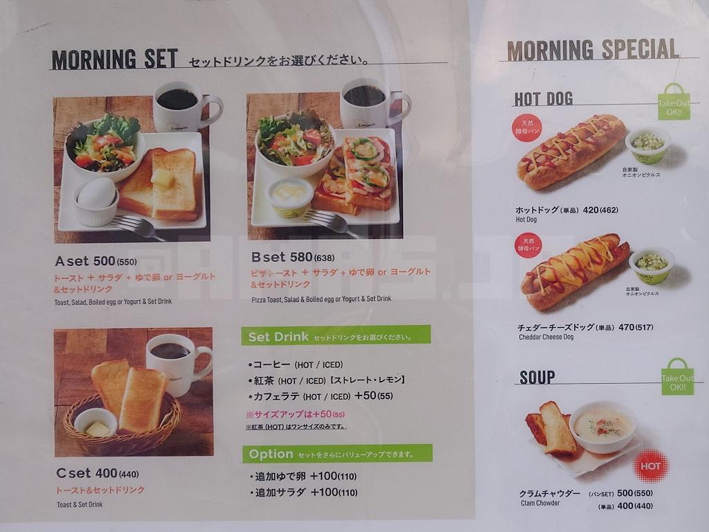 確認するのは、モーニングメニュー