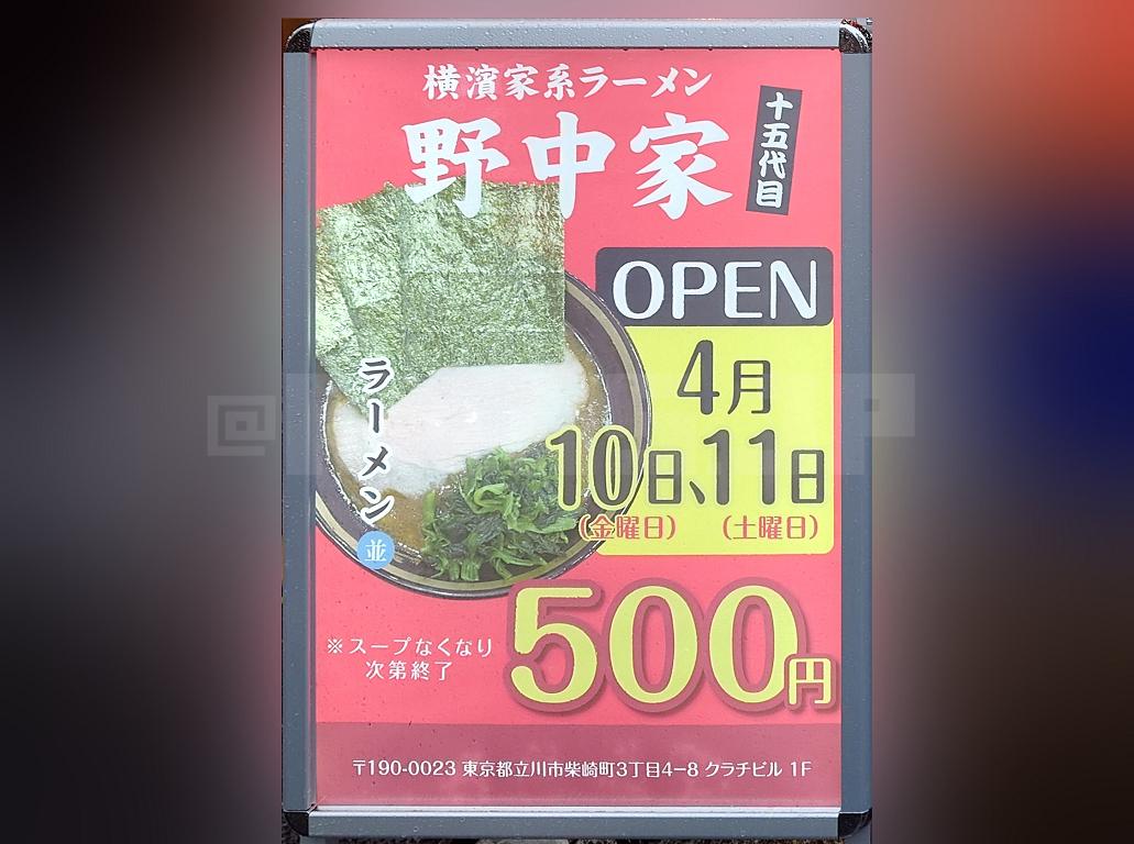 4月10日と11日は、ラーメン並 1杯 500円