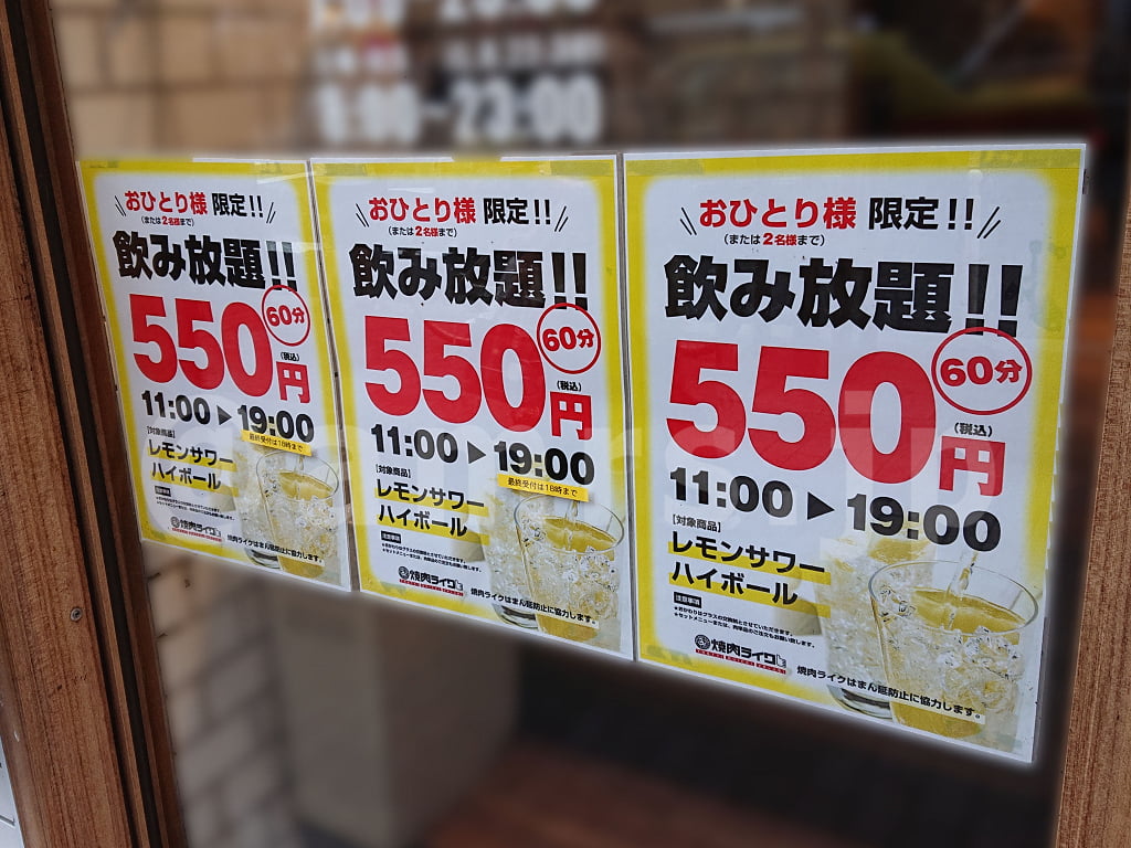 #焼肉ライク ではお一人様、またはお二人様限定で「まん延防止60分550円レモンサワー、ハイボール飲み放題」を東京、千葉、埼玉、大阪の28店舗にて開催中!