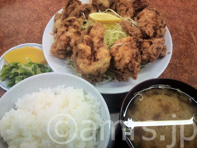 【閉店】大金@東京都八王子市 X Bluesky Facebook はてブ LINE2012.01.27東京都食多摩地域(都下)八王子市閉店定食から揚げ揚げ物食いたいと、大金へ意外と空いており サクッと入店し着席。久しぶりにとんかつ? 俺定番チキンカツ? しかし、ここは鶏唐揚げにしてみました。待つ事12分 評価は、7点カリサク熱々 ジューシーな唐揚げイイ しかもガッツリ仕様やっぱり、添え物のスパゲティにソースちょい掛けすると美味いね。食べた物:鶏唐揚げ850円 住所:東京都八王子市千人町2-20-5 営業時間:11:00-14:00,17:00-21:00(ご飯なくなり次第終了) 定休日:水・日・祝