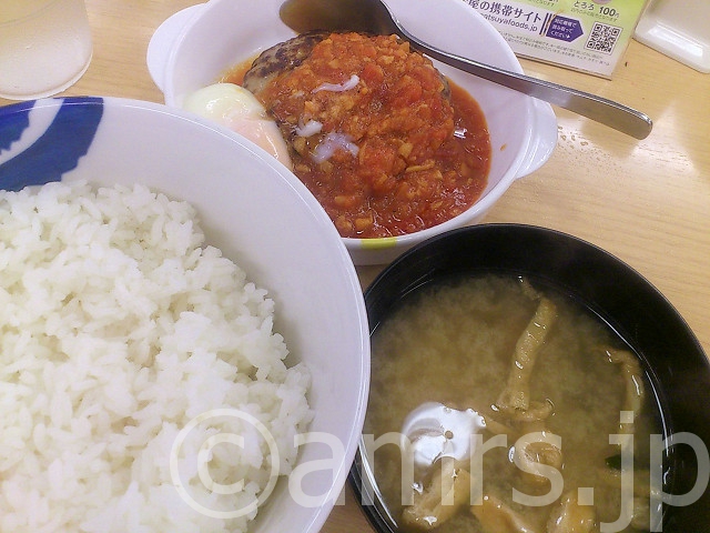 食べた物:うまトマハンバーグ定食 580円、ご飯大盛 +50円