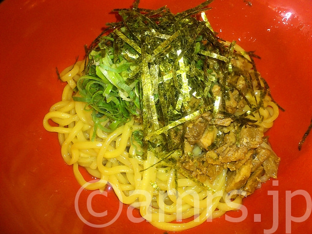 スープを・・・と行きたいところですが、油そばなので天地返し