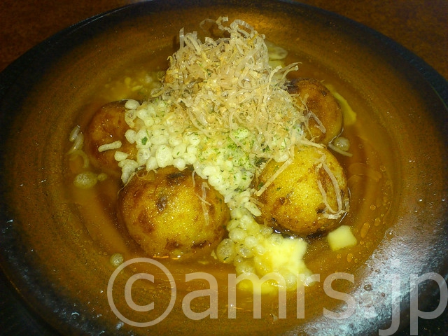 たこ焼きを揚げてあり、あっさりソースの中へ入れてあるのはイイのですが