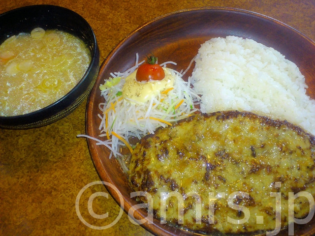 箸で食べるハンバーグは、ジューシーで柔らかく美味い。
