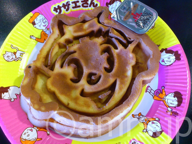 チョコやらストロベリーやらあったのですが、ここはシンプルにサザエさんワッフル プレーンを注文